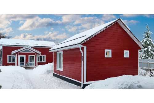 1. При использовании покрытия Colority® Print, «ЭкоБрус GL» достигает максимального сходства с клееным брусом. Надежное скрытое сцепление панелей придает фасаду здания естественный вид.