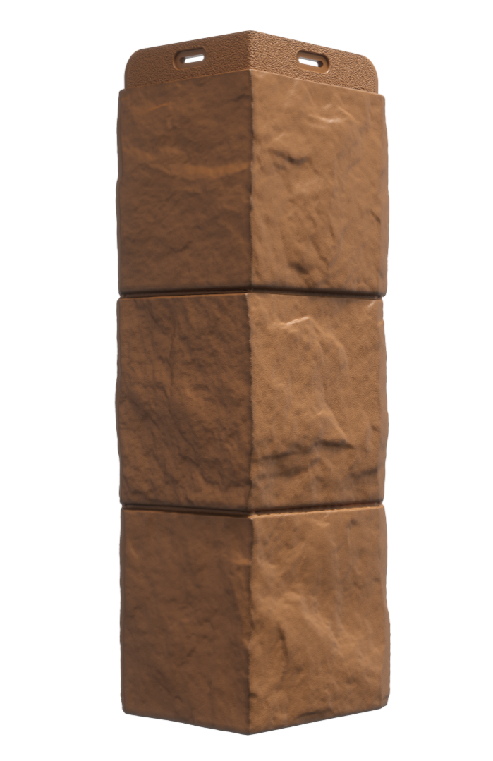 Внешний угловой элемент для декоративной отделки фасадов, облицованных рядовыми панелями Docke серии Premium, коллекция Fels, цвет терракотовый. Выполнен в стиле и дизайне панелей, придает фасаду стильный и законченный вид.